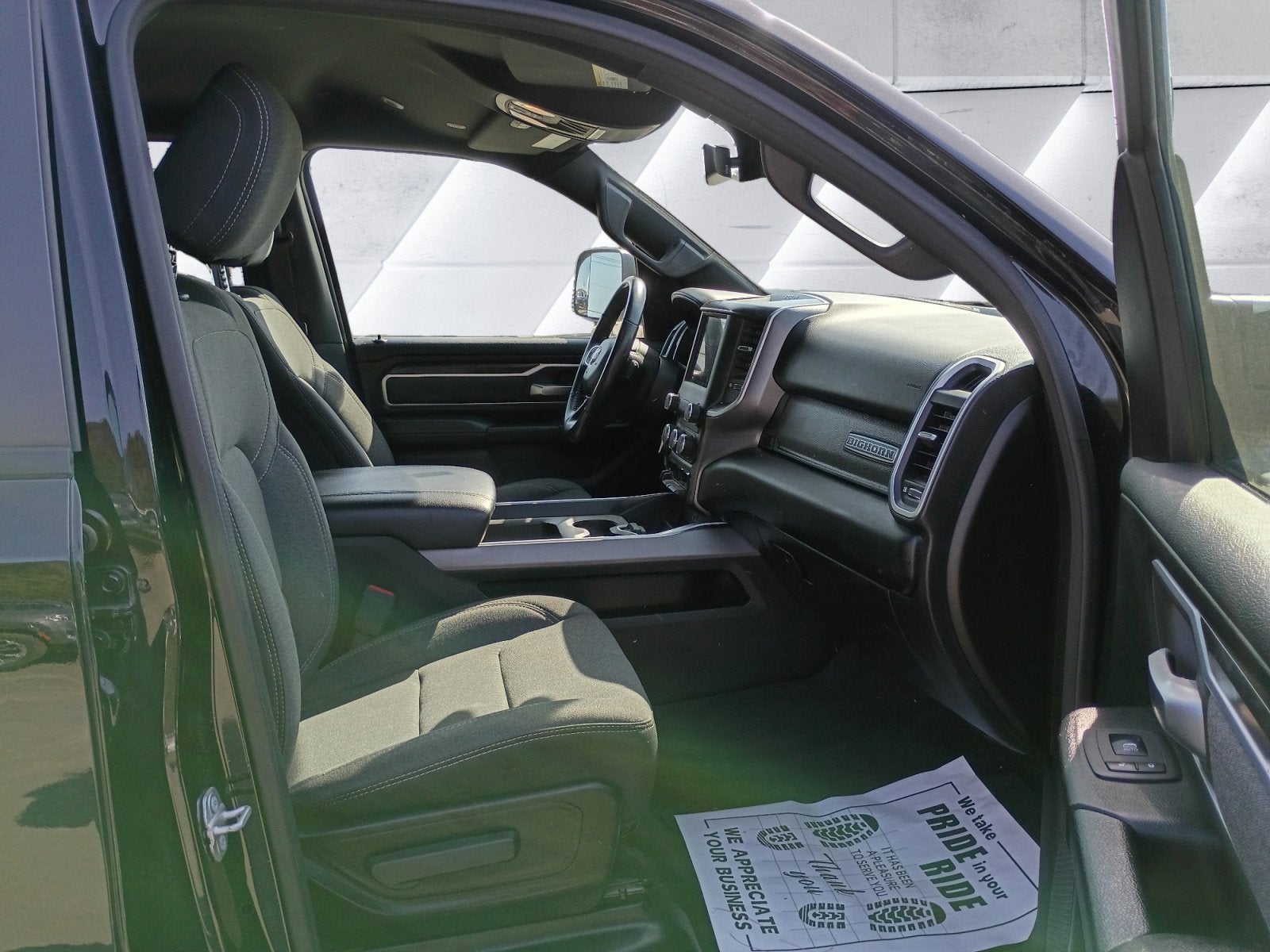 Featured Equipment: 1500 Big Horn/Lone Star, 4D Crew Cab, HEMI 5.7L V8 Multi Displacement VVT, 8-Speed Automatic, 4WD, Diamond Black Crystal Pearlcoat, Black w/Cloth 40/20/40 Bench Seat, 2nd Row In Floor Storage Bins, 3 Rear Seat Head Restraints, 4 Way Front Headrests, Add Class IV Receiver Hitch, Apple CarPlay, Auto-Dimming Rear-View Mirror, Big Horn Badge, Big Horn IP Badge, Big Horn Level 1 Equipment Group, Black Interior Accents, Black Premium Power Mirrors, Black Trailer Tow Power Mirrors, Body Color Door Handles, Body Color Front Bumper, Body Color Premium Power Mirrors, Body Color Rear Bumper w/Step Pads, Bucket Seats, Class IV Receiver Hitch, Cluster 3.5 TFT Color Display, Deluxe Cloth Bucket Seats, Foam Bottle Insert (Door Trim Panel), Front Seat Back Map Pockets, Full Length Floor Console, Glove Box Lamp, Google Android Auto, Grille Surround 1 Body Color Texture 2 Black, Manual Adjust 4-Way Front Passenger Seat, Power 4-Way Driver Lumbar Adjust, Power 8-Way Driver Seat, Power Adjustable Pedals, Quick Order Package 25Z Big Horn, Radio: Uconnect 4 w/8.4 Display, Rear 60/40 Folding Seat, Rear Dome w/On/Off Switch Lamp, Rear Power Sliding Window, Rear Window Defroster, SiriusXM Satellite Radio, Sport Appearance Package, Sport Decal, Sun Visors w/Illuminated Vanity Mirrors, Trailer Brake Control, Trailer Tow Group, Universal Garage Door Opener.